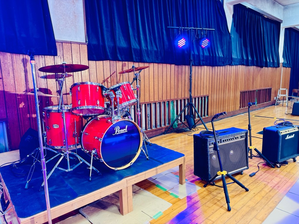 学生バンドによるイベントのため、転換のしやすさと安定した音作りを重視し、事前準備から本番まで一括サポートしています。