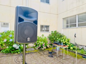 2025年7月18日、千葉県船橋市の高等学校にて開催された中庭ライブにドラムセット・スピーカー・マイクなどの機材レンタルを行いました。
